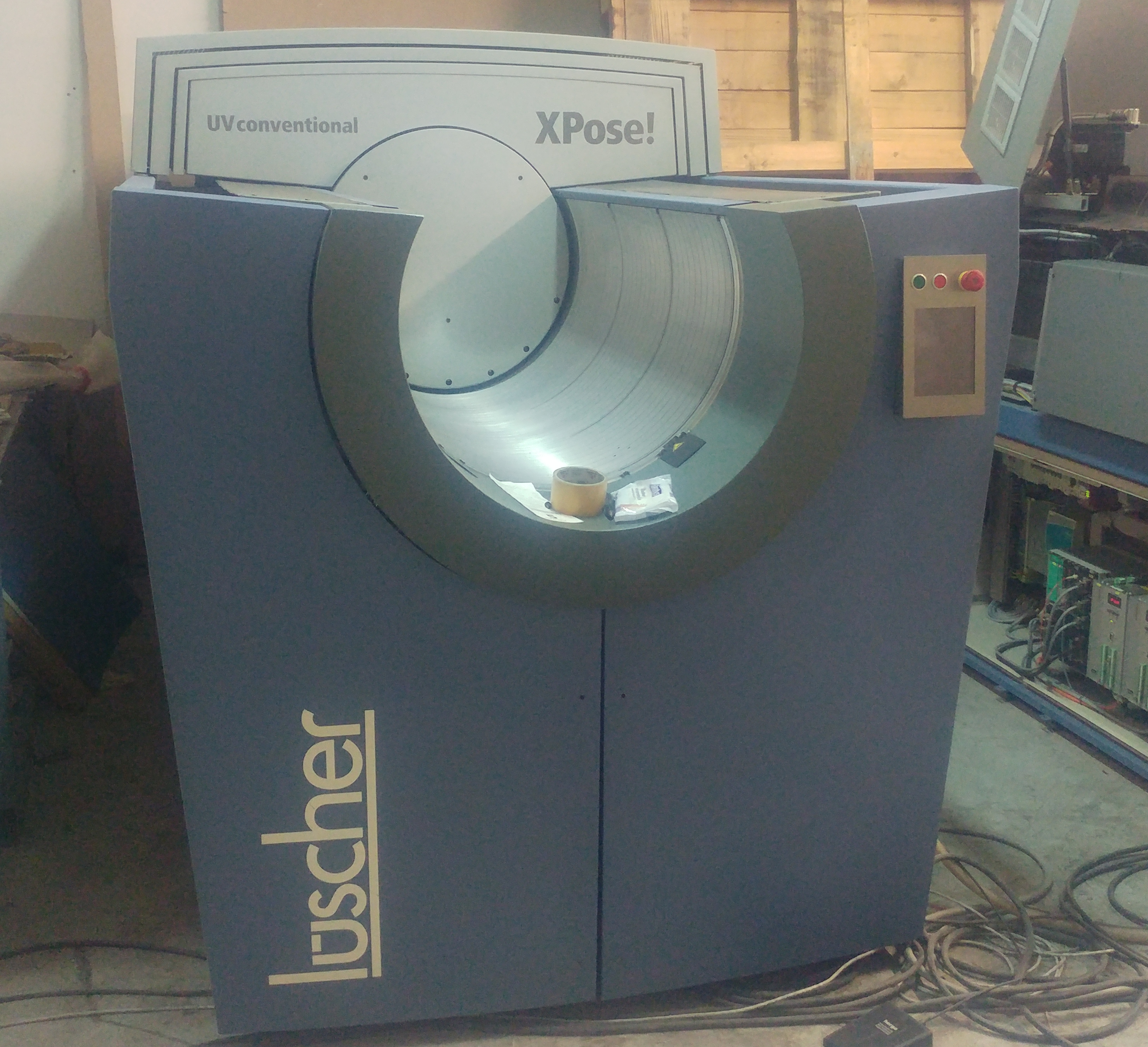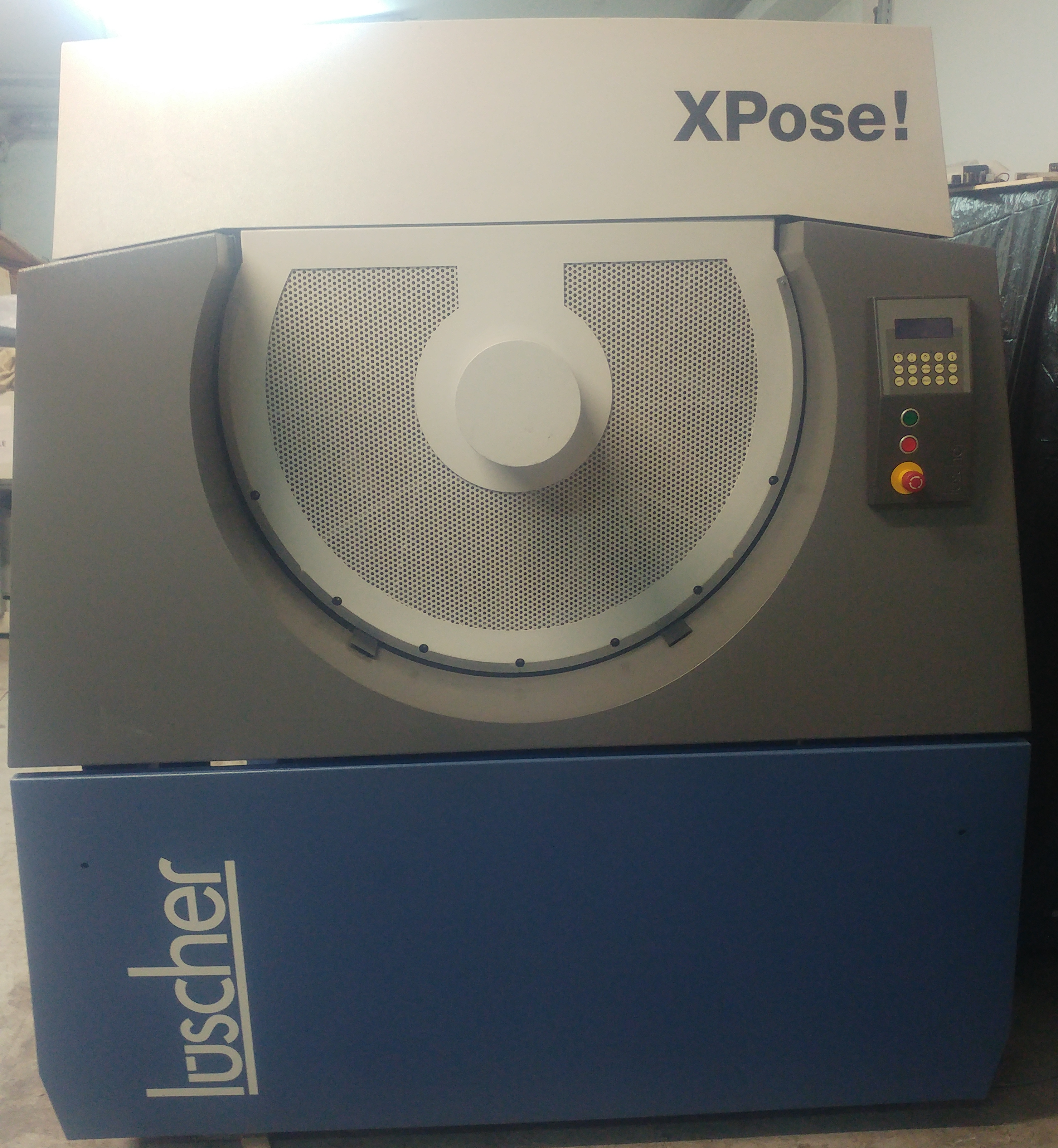 Luscher XPose proizveden 2008.g. sa 32 laserdiode valne duljine 405nm (za osvjetljavanje konvencionalnih offset-ploča), max format ploče 1130x950, sa ugrađenim bušačem ploča 780mm; generalno uređen sa garancijom 12 mjeseci